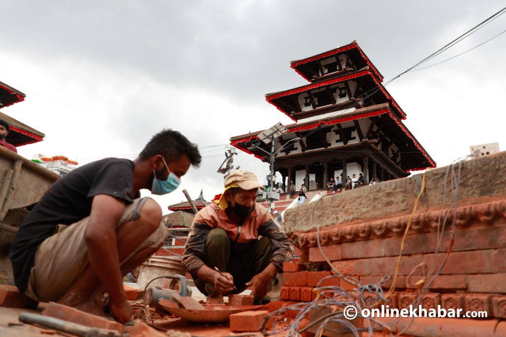 दरबार स्क्वायर परिसरमा रहेका काष्ठमण्डप, कुमारी घर, शिवपार्वती मन्दिर लगायत सम्पदामा रङरोगन गर्ने र रातो ध्वजा फेर्ने काम भइरहेको छ ।